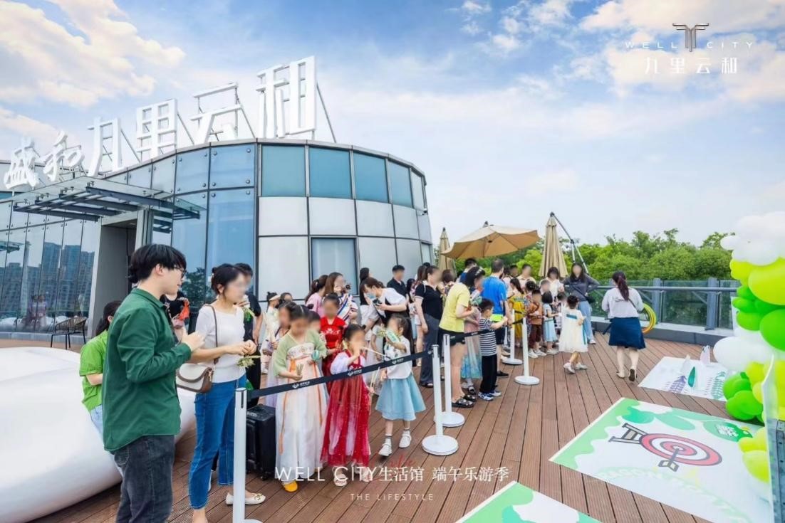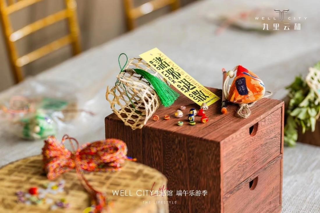 端午節(jié),當(dāng)?shù)歉咄h,或觀龍舟競渡,或遍嘗美食。端午節(jié)期間,沿海集團盛和房產(chǎn)九里云和項目舉辦端午樂游活動,坐落于通揚運河與通呂運河的臨時售樓處為陣地,帶來雄黃點額、皮影戲、五彩繩編織等多樣體驗活動,將客戶代表的生活理想與審美追求,融入傳統(tǒng)節(jié)日的內(nèi)容與儀式感中。