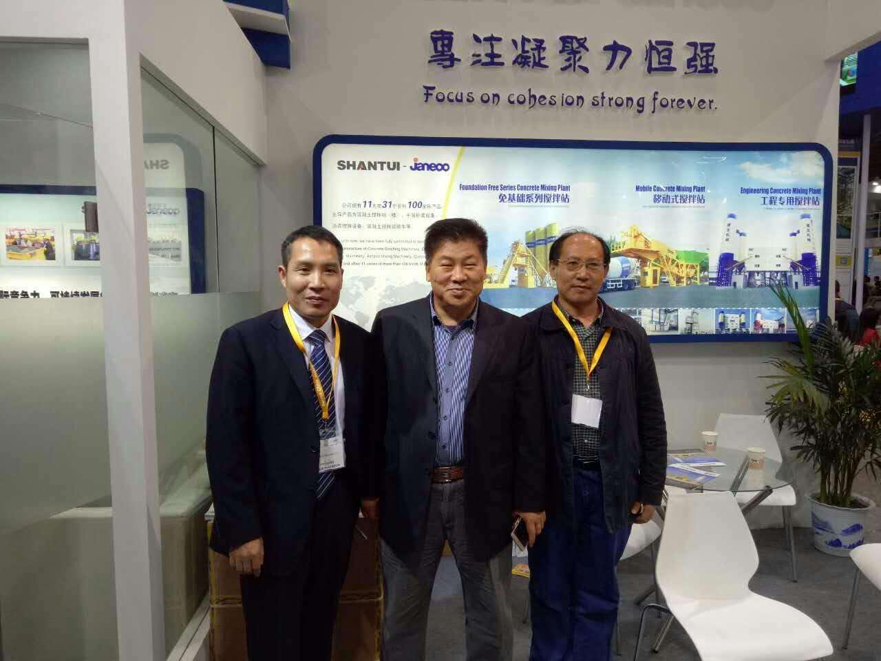 符會長與長安大學馮忠緒教授、博士生導師和長沙盛泓王圣亮總經理相聚寶馬展,馮教授一直致力于混凝土機械、特別是對振動混凝土攪拌機精心研究多年,符會長與馮教授進行了較長時間交談,馮教授希望符會長在方便時參觀振動攪拌機生產企業,進一步了解使用情況,爭取早日在行業推廣,符會長愉快的接受了邀請。