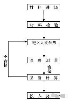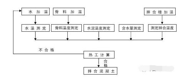 5.3根據計算結果進行判定,若計算結果表明拌和后的混凝土溫度復核驗標要求,那么可立刻進行混凝土拌和,若計算結果表明拌和后的溫度不能達到驗標要求,通過水加溫等手段提高各原材料溫度,重新進入下一道工序。