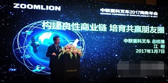 當日,江明總經理在大會上表示,中聯重科工業車輛已經搭建了良好的商業生態鏈,并建立了以“誠信、共贏、協同、競爭”為商業觀的朋友圈。2017年中聯叉車的經營定位是:進一步夯實產品、渠道基礎。注重規模與效益之間的平衡,強化商業鏈的良性運營。國內市場在風險可控的前提下,注重培育、扶持“朋友圈”代理和客戶,穩固市場地位。
