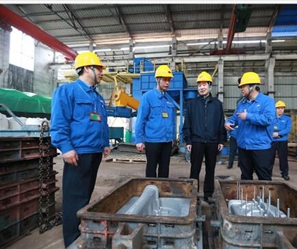 在曲軸車間溶化工序生產線,晏平詳細詢問此工序的生產情況,了解鑄件毛坯的天標、質量等情況。玉柴配司陪同人員介紹,目前,曲軸毛坯日產量突破600箱,創造了新的生產紀錄。