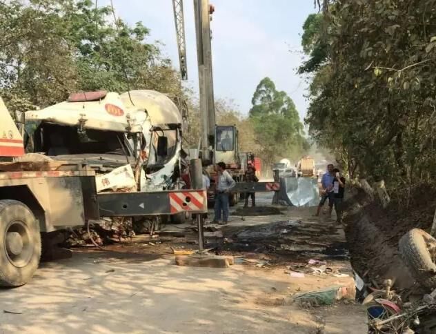 一輛混凝土車撞上一名騎摩托車的男子,摩托車被壓扁粉碎,駕駛員頭部被壓,當場不幸身亡。混凝土車散架報廢,司機受輕傷。