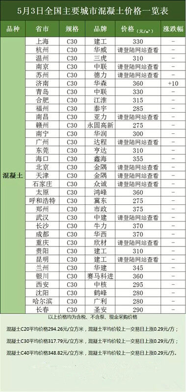 砼商網資源分享,4月24日全國主要城市水泥、混凝土價格表。
