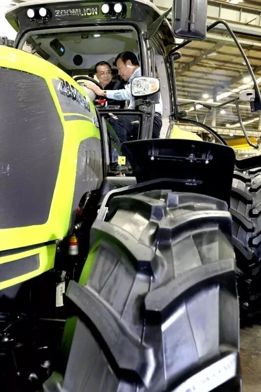 李克強總理登上“一人高的輪子、深耕可達半米”的中聯重科大馬力拖拉機