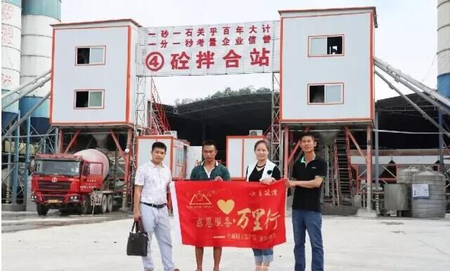 回訪團到達2HZS60水泥混凝土攪拌站工地,查看了設備運行情況,與攪拌站站長深入交流,攪拌站站長告知設備運行良好,出料很給力,在整個工程工期中得到保證。