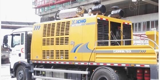 徐工超高壓車載泵在現場持續施工對建筑體260米以上施工平臺進行混凝土澆筑