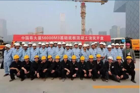 為了保障此次澆筑的順利完成,三一派出了20多名服務工程師駐守工地,保證每臺設備至少有一名服務工程師進行專職服務。2014年4月27日,在18臺三一車載泵、20多臺三一攪拌車的全力保障下,“中國尊”項目完成了最大底板澆筑,將標號60以上的高粘稠度混凝土一次性泵送到位。這次澆筑持續了96個小時,一次性連續澆筑混凝土總量達5.6萬立方米,在連續澆筑期間,實現了零事故、零投訴,澆筑一次成優,創造了北京建筑業的新奇跡。