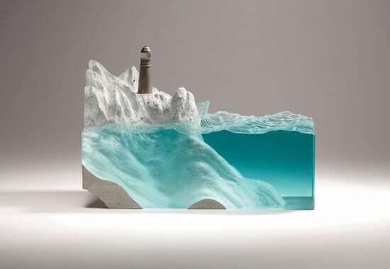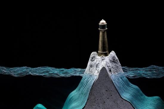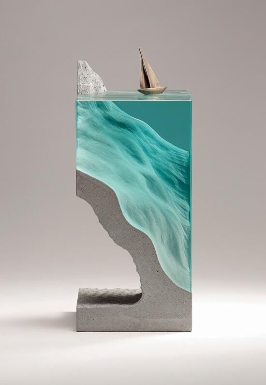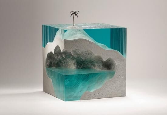 水、陸地、巖石被這位來自悉尼的雕塑家Ben Young用玻璃和混凝土打磨得惟妙惟肖,逼真同時很藝術。Ben Young出生在新西蘭,從事玻璃雕塑制作已有10多年的時間。他的作品看上去嚴絲合縫,精確細膩,盡管是混凝土這種粗糙的材料,也被打磨得如奶油般光滑。