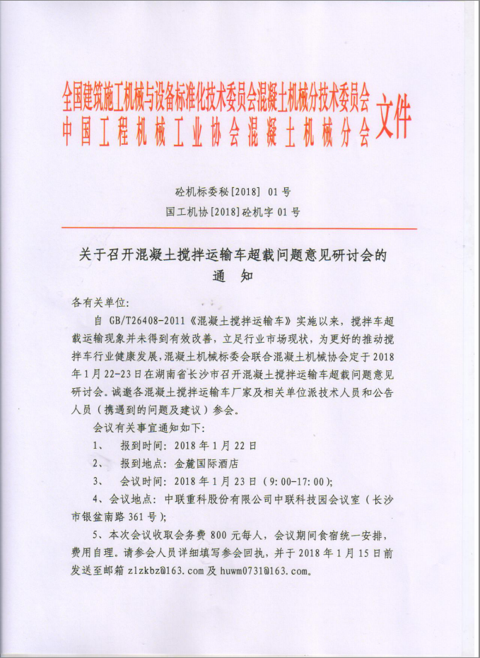 關(guān)于召開混凝土攪拌運(yùn)輸車超載問題意見研討會(huì)的通知