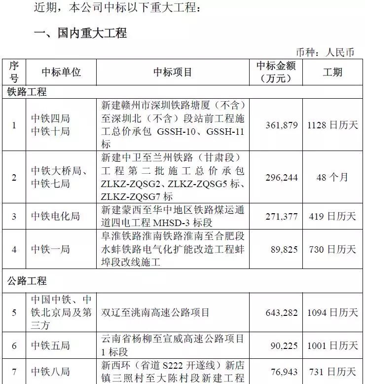 452億元!中國中鐵重大工程中標公告