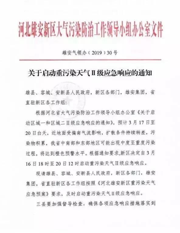 按照省大氣辦《關于啟動區(qū)域一和區(qū)域二Ⅱ級應急響應的通知》要求,根據(jù)近日氣象擴散條件,市重污染天氣應對指揮部決定自2019年3月16日18時至20日12時,全市啟動重污染天氣Ⅱ級應急響應。現(xiàn)將有關事項通知如下:
