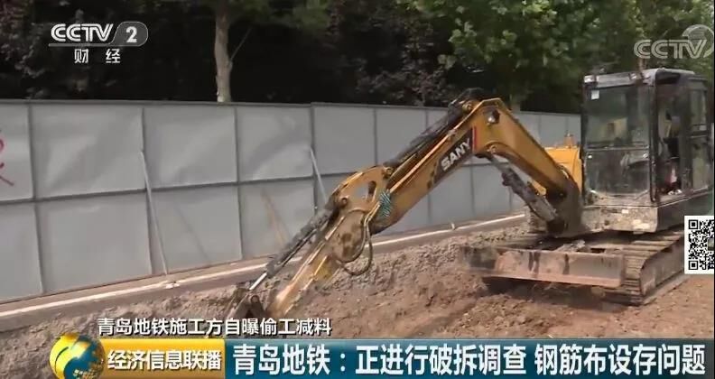 6月28日,針對劉飛云反映問題,青島地鐵通過官方渠道回應稱,該工程系青島地鐵1號線外部電力管道配套工程,連接外部變電站與地鐵變電站,全長7.7公里,目前已施工約1.5公里。通過對這1.5公里工程的局部挖掘和破拆檢查發現,存在鋼筋布設疏密不均的問題。