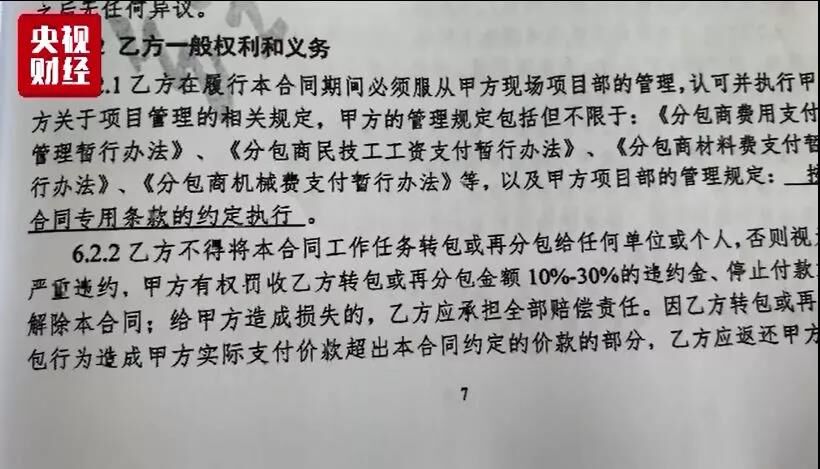 至于永利捷與下游企業繼續進行分包的事宜,記者也獲得了一份永利捷公司與下游公司簽訂的合同。而法律專家表示,從永利捷公司往下的一系列轉包分包行為均涉嫌違法。