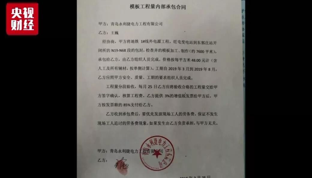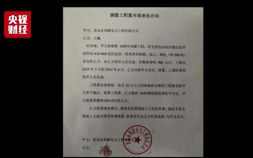 從青島地鐵到爆料人,一個總額1.4億元的地鐵配套項目工程,歷經永利捷、順源達等多家公司分包、以及多位“中間人”轉手。其中環節到底有沒有涉嫌違法?央視記者走訪了青島地鐵集團和葛洲壩電力公司。