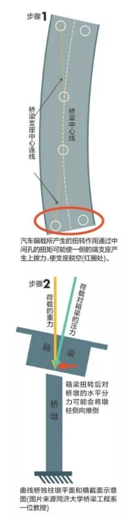 同濟(jì)大學(xué)橋梁工程系專家分析,曲線橋獨(dú)柱墩設(shè)計(jì)存在小概率隱患,國(guó)內(nèi)車況復(fù)雜或增大事故概率