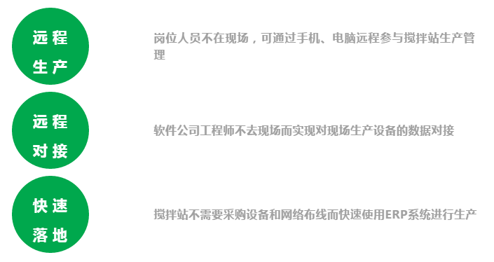 在前兩代基于攪拌站現(xiàn)場服務器的ERP管理系統(tǒng)的基礎上,首次實現(xiàn)攪拌站與攪拌站、攪拌站和工地、攪拌站和供應商,以及攪拌站企業(yè)和攪拌站設備之間的信息互聯(lián)互通。