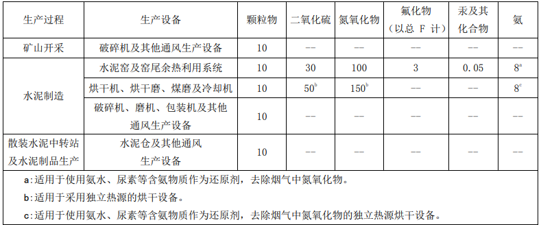 河北省出臺的《水泥工業大氣污染物超低排放標準》,嚴格了顆粒物、二氧化硫、氮氧化物的排放限值,分別為10mg/m3、30mg/m3、100mg/m3;對烘干機、烘干磨、煤磨及冷卻機系統的顆粒物、二氧化硫、氮氧化物排放限值分別確定為10mg/m3、50mg/m3、150mg/m3。與現行國家標準以及其他省份標準相比,達到了先進水平。對烘干機、烘干磨、煤磨及冷卻機系統,在排放限值基礎上增加了脫硝系統氨逃逸控制指標,排放限值為8mg/m3。