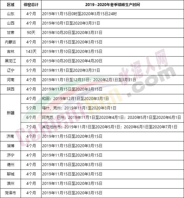 回顧2019年水泥企業錯峰生產時間如下: