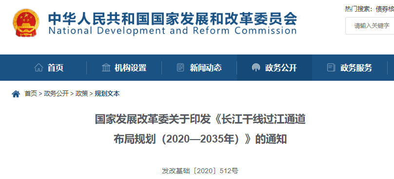 ??《長江干線過江通道布局規劃(2020—2035年)》(以下簡稱《規劃》)業經國務院批準,現印發給你們,請按照執行,并就有關事項通知如下: