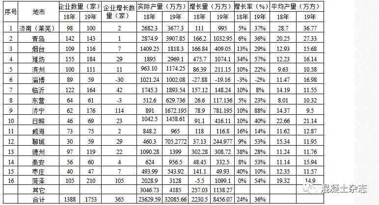 山東省2019年預(yù)拌混凝土生產(chǎn)企業(yè)及產(chǎn)量統(tǒng)計(jì)