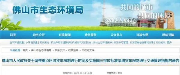 佛山市發(fā)布《關(guān)于調(diào)整重點(diǎn)區(qū)域貨車限制通行時間及實(shí)施國三排放標(biāo)準(zhǔn)柴油貨車限制通行交通管理措施的通告》,公告指出,自2020年7月1日起佛山實(shí)施國三排放標(biāo)準(zhǔn)柴油貨車限制通行,限制通行范圍、時段與中心城區(qū)貨車限制通行范圍、時段一致;公安機(jī)關(guān)交通管理部門不再向國三排放標(biāo)準(zhǔn)柴油貨車發(fā)放通行證。國三排放標(biāo)準(zhǔn)柴油貨車于2020年7月1日前在本市已辦理通行證的,在通行證有效期內(nèi)仍可繼續(xù)使用。