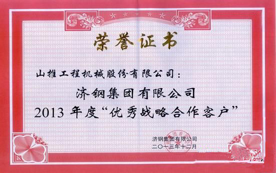 摘要:近日,山推股份公司榮獲濟(jì)鋼集團(tuán)有限公司2013年度“優(yōu)秀戰(zhàn)略合作客戶”榮譽(yù)證書。