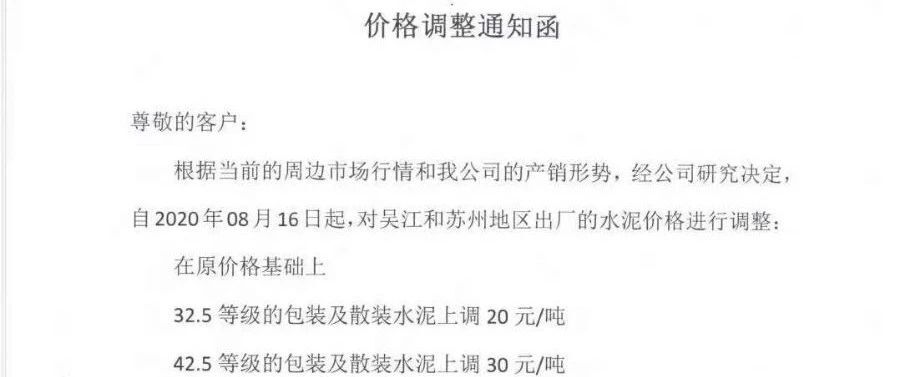 熟料漲價之后長三角區(qū)域水泥價格正式開漲!