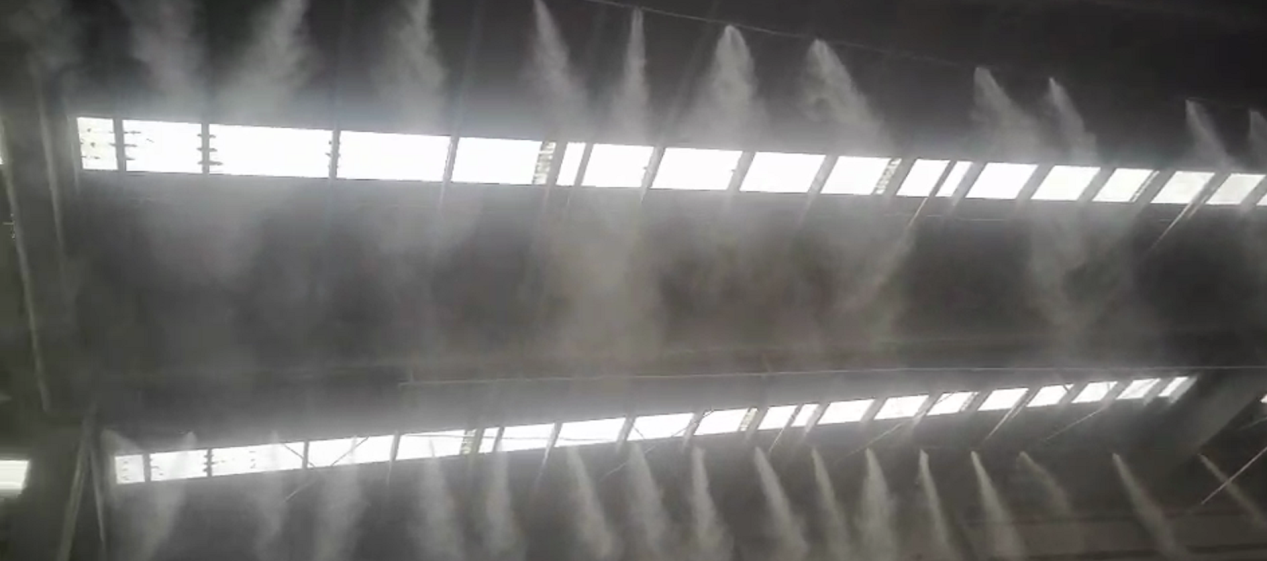 廠區(qū):設(shè)置全自動(dòng)抑塵霧樁,采用高壓水射流技術(shù),通過(guò)主機(jī)泵將水加壓,經(jīng)高壓霧化噴嘴噴射,機(jī)頭可隨場(chǎng)地需求定義旋轉(zhuǎn)角度,噴射半徑可達(dá)40米,有效處理廠區(qū)揚(yáng)塵。
