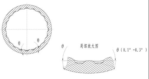 在內孔加工過程中,油穴與內壁交接處自然形成0.10~0.30的楔形角,不僅提高了布油效率,而且兩排油穴之間的部分形成類似滾珠的弧形面,使軸套內壁具有了滾動軸承的特點。
