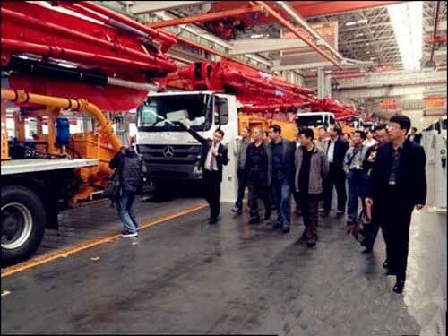 25日上午,考察團(tuán)全體成員在三一重工一號會議室召開了2014年度山東省混凝土協(xié)會會長工作會議,三一重工泵送營銷公司副總經(jīng)理王暾先生致歡迎詞,會議對2014年全年工作進(jìn)行部署、攪拌站評優(yōu)等問題展開討論。12點40分,考察團(tuán)參觀了三一產(chǎn)業(yè)園,一進(jìn)廠區(qū),一排排鮮紅锃亮的混凝土泵車像是巨人般列隊歡迎,亞洲最大的花園式18號廠房、一塵不染的總裝車間、豐富多彩的企業(yè)文化、振奮人心的發(fā)展前景,讓考察團(tuán)領(lǐng)導(dǎo)班子頻頻點贊,感嘆三一不愧為世界級工程機械制造商,充分肯定了三一重工在混凝土行業(yè)中的龍頭地位。參觀后,考察團(tuán)集體合影留念。