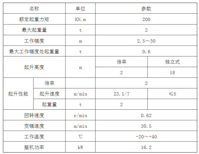塔機使用狀況的基礎上,通過對各關鍵部件優化設計后的一種新型號塔機,該塔機最大起重量2t,最大工作幅度30米,起升高度18米,可以滿足小別墅群及小型建筑施工的需求。