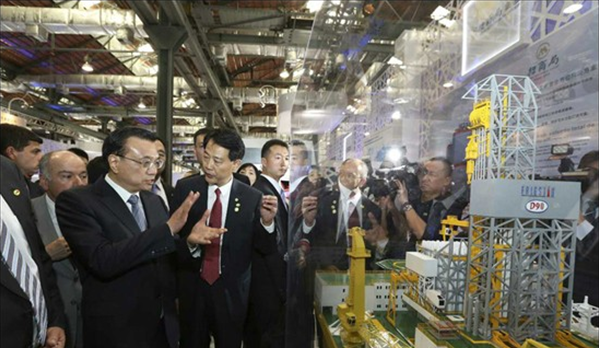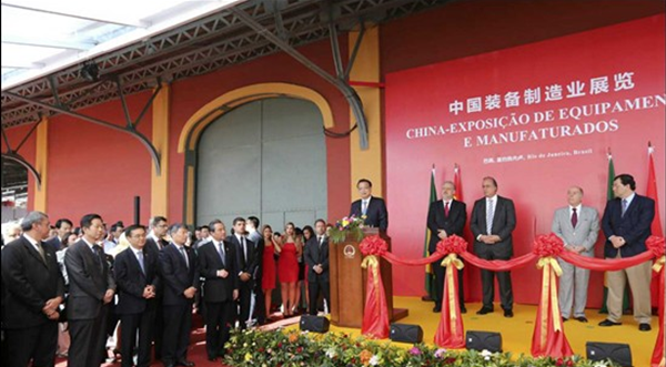 當地時間20日,李克強在里約熱內盧州州長佩藏和巴西外長維埃拉的陪同下來到里約民港碼頭,參觀正在這里舉辦的中國裝備制造業展覽,并為展覽開幕剪彩。展覽包括鐵路及軌道交通、電力、通信、金融等10個板塊,代表國內裝備制造業最高水平的30家中國企業參展。