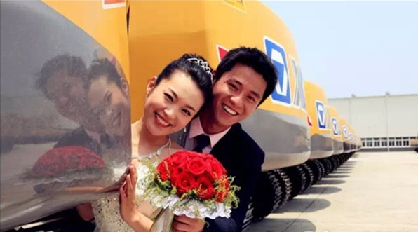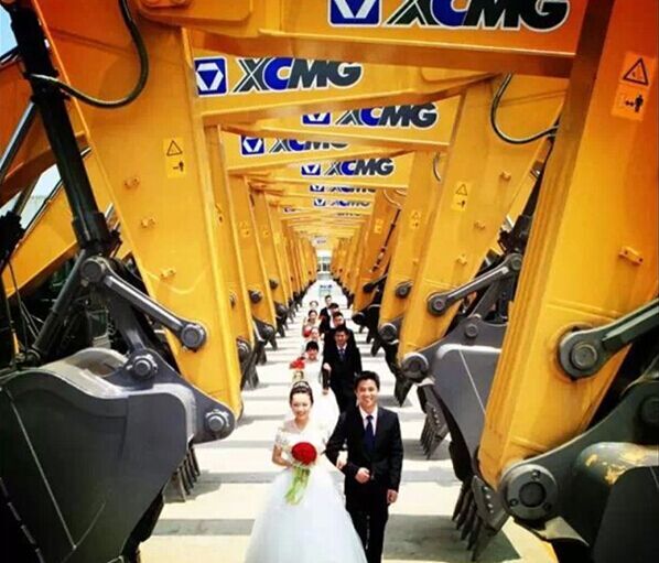 史上最大的婚車,史上最酷的愛情長廊,史上最闊綽的求婚,史上最霸氣的婚照---當愛情綻放在徐工,聽說婚紗和挖掘機更配哦。