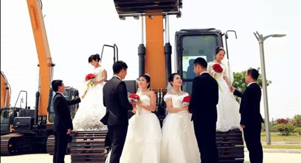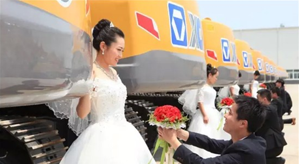 繽紛的禮花、鮮紅的玫瑰、潔白的婚紗、幸福的笑容……一幅美麗浪漫的愛情畫卷在徐工挖機盡情舒展。5月16日,徐工挖機5對新人在公司領導、親人、同事的共同見證下互贈愛情信物、宣讀愛情宣言、述說浪漫故事……許下相伴一生的諾言:情定徐工,相約百年!