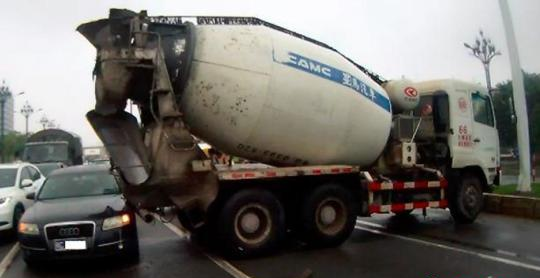 由于連日來(lái)的大雨,23日下午13時(shí)50分許,福建晉江市晉光路燈控路口,一輛攪拌車(chē)剎車(chē)打滑,車(chē)頭沖上綠化帶撞了電子警察監(jiān)控桿,之后車(chē)身打橫,車(chē)尾擦撞了一旁停車(chē)等紅燈的奧迪小車(chē),兩人當(dāng)街發(fā)生爭(zhēng)執(zhí)。