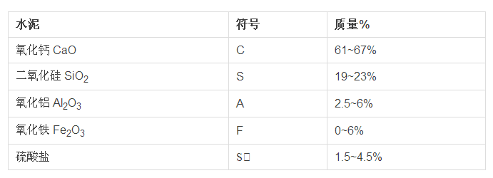 這里是硅酸鹽水泥熟料(水泥的干粉版本)的一般配方。配比隨應用變化,取決于水泥所需的材料性能。
