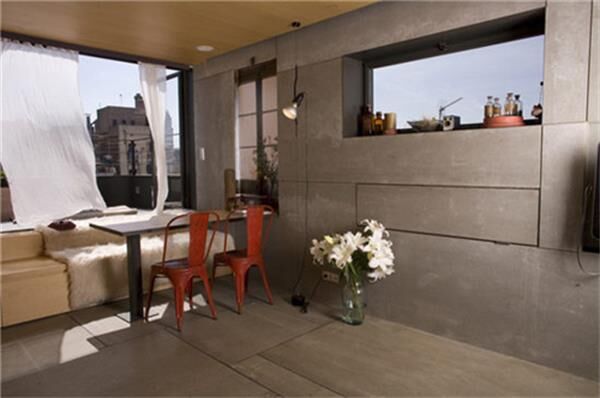 不去改動房屋的承重結(jié)構(gòu)而重新設(shè)計(jì)裝修。其中一個大的改動就是把床直接搬到窗戶旁邊,享受透亮的感覺。一邊是以混凝土刷新墻面和地面,營造工業(yè)風(fēng)的年代質(zhì)感。