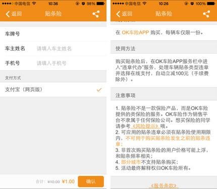 貼條險(xiǎn)是由《OK車險(xiǎn)》在今年3月推出的險(xiǎn)種,用戶需支付1元,若愛車不幸被貼條可減免100元,保障期為一年,使用后可重復(fù)購買但價(jià)格會(huì)相應(yīng)提高。這款保險(xiǎn)同樣銷售火爆,幾天時(shí)間即賣出了上萬份,《OK車險(xiǎn)》也因此名聲大噪。