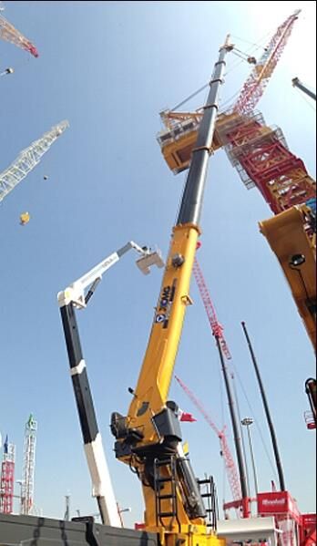 雙列球回轉支承的應用,有效減小整機的機構件尺寸和安裝要求,提高整機的適應性。副臂、副卷揚、副鉤的應用,為起重機輕載快速大幅度和大高度作業提供選擇基礎,拓展產品使用領域。負角度應用,提高產品運輸性能,作業范圍大,滿足-11°~75°的廣角作業,同時可實現副臂、副鉤支架及倍率的方便更換操作。
