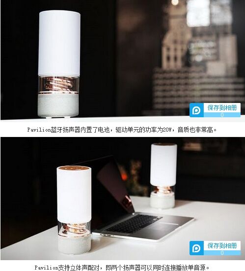 牙3.0和aptX編碼,能夠帶來CD般的音質表現。除了單獨使用之外,你也可以用兩個Pavilion組成立體聲來播放同一個音源。