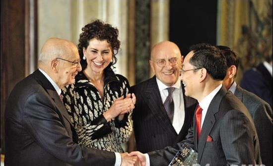 意大利總統納波利塔諾為中聯重科詹純新頒發“萊昂納多國際獎”,這是中國企業家首次獲該國際獎項。