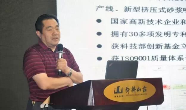 ▼ 山東方達康工業纖維素有限公司總經理馮文利做“預拌砂漿調配技術商榷”的演講;