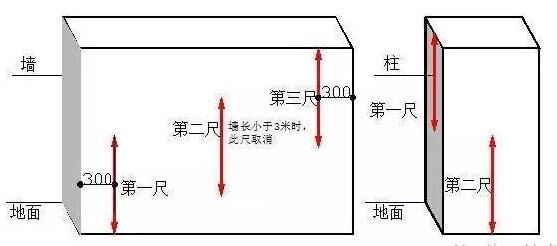 二、截面尺寸偏差1、指標說明:反映層高范圍內剪力墻、混凝土柱施工尺寸與設計圖尺寸的偏差。2、測量工具:5m鋼卷尺3、測量方法和數據記錄(1)以鋼卷尺測量同一面墻/柱截面尺寸,精確至毫米。(2)同一墻/柱面作為1個實測區,累計實測實量不少于5個實測區。每個實測區從地面向上300mm和1500mm各測量截面尺寸1次,選取其中與設計尺寸偏差最大的數,作為判斷該實測指標合格率的1個計算點。4、示例: