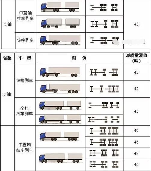 按照《道路車輛外廓尺寸、軸荷及質量限值》確定的最大質量限值作為認定標準。其中,最大的變化是6軸車由55噸變為49噸。