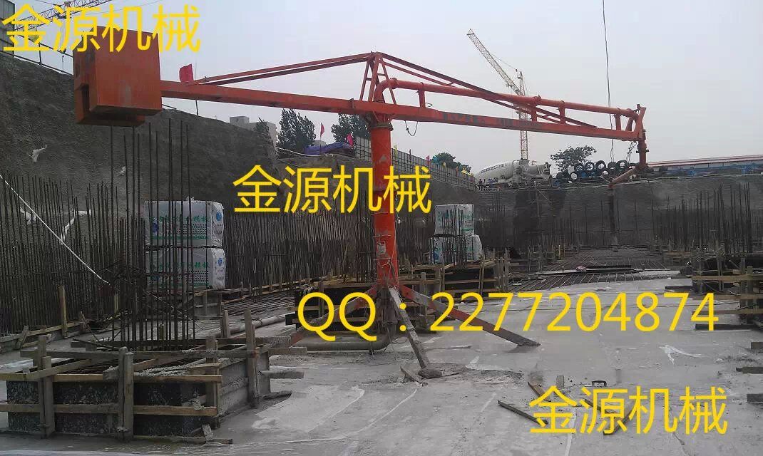 河南金源布料機桿采用回轉,臂架式布料結構,配用125MM輸送管,360度回轉,整機手動操作。具有結構簡單,強度、剛性可靠,操作簡單,靈活,維修方便等特點,與混凝土泵配套使用可廣泛的應用于民用與工業建筑的混凝土澆注工程中。