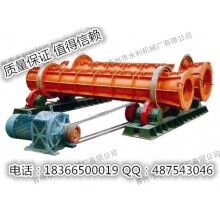 工作原理是:利用托輪支撐管模,并通過托輪帶動管模作高速運轉,混凝土料隨管模高速旋轉,產生離心加速度,在離心力的作用下,料物聚集擠向模具內壁,排出混凝土中的空氣和多余的水份,從而使管體密實成型并獲得較高的強度。