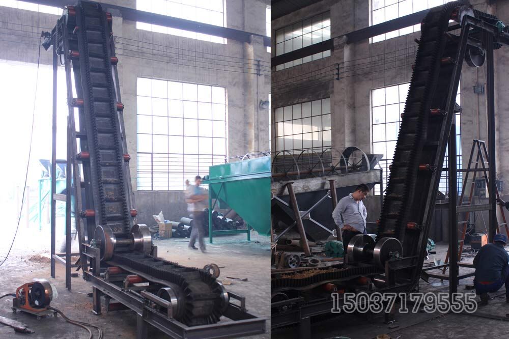 大傾角皮帶輸送機具有通用帶式輸送機結構簡單,運行可靠,維修方便等優點,并具有大傾角輸送、結構緊湊、占地少等特點,因而是大傾角輸送和垂直提升物料的理想設備。大傾角皮帶輸送機是有機肥生產的主要設備,在有機肥的生產中原料以及成品的垂直提升就需要大傾角皮帶輸送機來完成。