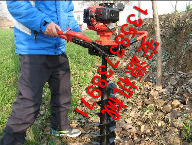 地鉆由小型通用汽油機(jī),齒輪箱及特殊設(shè)計的鉆具組成.適合在土地,凍土,冰層上打孔.廣泛用于園林,種植,植樹,物探,道路建設(shè)等領(lǐng)域. 2.鉆頭采用錳鋼合成更加的堅硬。對硬土質(zhì),超硬土質(zhì),粘土,凍土等都能工作。 3.地鉆可根據(jù)樹種,選配多種規(guī)格的鉆頭,以滿足用戶需要。 4.地鉆能夠讓人們從繁重的體力勞動解放出來,廣泛應(yīng)用于植樹造林,栽種果林、籬笆、及秋季給果樹施肥等。適合各種地形,效率高,便于攜帶及野外田地作業(yè)。 5.地鉆既可以單人操作,又可雙人操作,經(jīng)濟(jì)實用。 注意事項:1.使用正品2T(二沖程)FC級機(jī)油,嚴(yán)禁使用4T(四沖程)機(jī)油。 2.嚴(yán)禁使用純汽油。 3.嚴(yán)格按25比1的比例兌油. 4.新機(jī)器不可高速使用,請低速磨合3小時。 5.嚴(yán)禁在高速的時候突然關(guān)停發(fā)動機(jī),否則會使下次開機(jī)啟動困難。 6.感覺機(jī)器震動異常,請立即停機(jī)檢查,是否破損,松動,偏心。 7.嚴(yán)禁在有亂石堆的草地上使用。 8.鉆頭有嚴(yán)格的尺寸限制,嚴(yán)禁私自改裝或使用增大號鉆頭. 9.每工作一段時間清除火花塞、消音器積碳,清洗空氣濾清器,向齒輪箱加注黃油。 10.遇到問題自己無法解決的,不要私自拆裝。 11.機(jī)器長時間不用時,應(yīng)該將剩余的燃油倒出,然后發(fā)動機(jī)器將化油器內(nèi)的燃油全部燃燒干凈。 12.想讓機(jī)器運轉(zhuǎn)更穩(wěn)定,壽命更長請經(jīng)常保養(yǎng)。 安全事項: A.人身安全:嚴(yán)禁在室內(nèi)添加汽油,嚴(yán)防火災(zāi);機(jī)器運行時,嚴(yán)禁手腳靠近鉆頭;清理或檢查機(jī)器時必須停機(jī)。 B.機(jī)器安全:地鉆起動前必須清理草坪上的雜物,確保機(jī)器安全運轉(zhuǎn)。