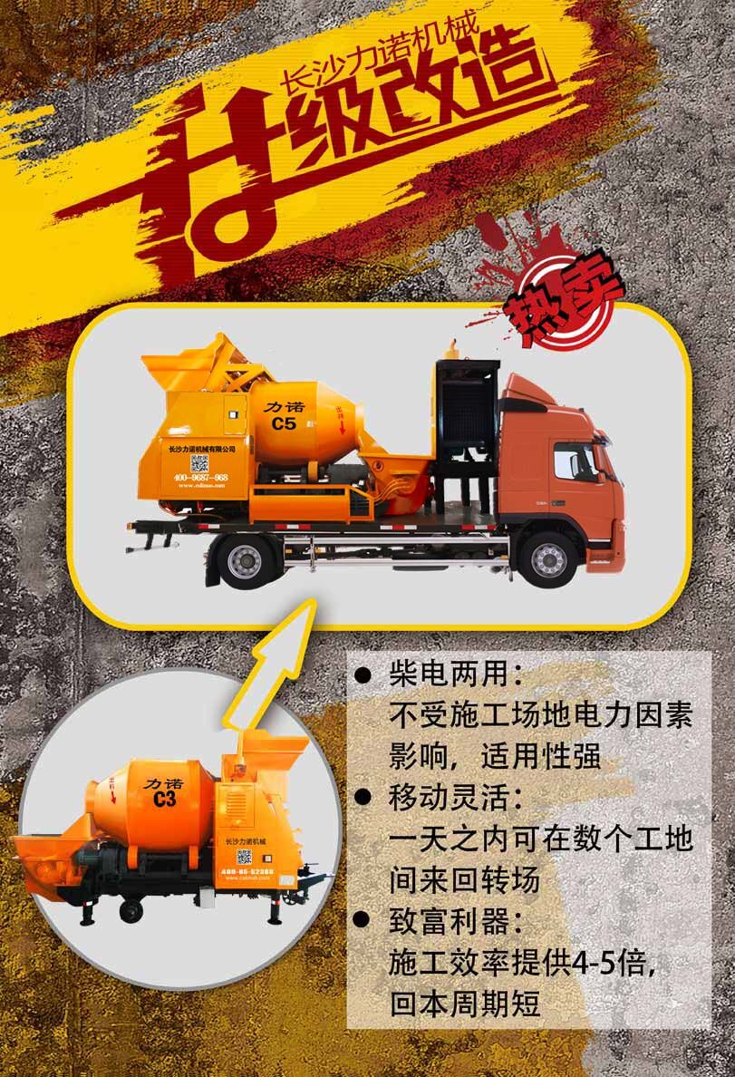 柴電兩用不受場地電量影響。操作簡單,一人操作整機,解決雇人難,降低勞動強度,讓混凝土更高,更遠,更安全的輸送。增加汽車底盤,轉(zhuǎn)場更方便,維修更簡單。