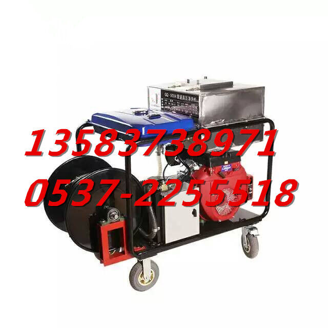 用于疏通、清除管道中的堵淤和污物。本機選用13馬力汽油機為動力,高壓泵壓力為210公斤,流量為25/分鐘,體積小、壓力大、清洗能力強。能清洗直徑為100mm--300mm管道,疏通能力50米。